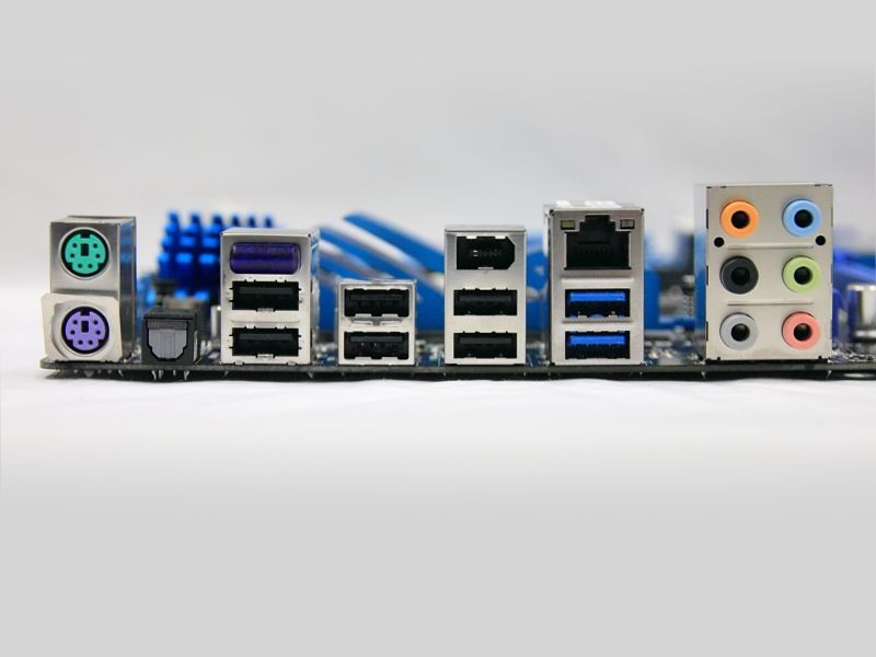 ▲ 背面のI/Oパネルには、P/S2ポート・USB 3.0ポート ×2・USB 2.0ポート ×6・IEEE 1394ポート ×1・Bluetoothコントローラ ×1・オーディオポートが備えられています。目新しいのはBluetooth 2.1 + EDR対応のBluetoothコントローラが搭載されている点ですね。このBluetoothコントローラは、Bluetooth対応スマートフォンとPCを連動させるBT GO!という機能で利用されるもののようです。