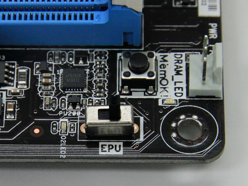 ▲ 電力管理コントローラのEPUとオーバークロックコントローラのTPUの機能をON/OFFできるDIPスイッチを搭載。