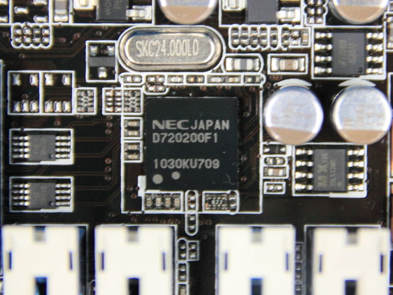 ▲ USB 3.0用のコントローラには NEC JAPANの D720200 が2チップ搭載されています。これは、背面のI/Oパネルの2ポート用と、内蔵USB 3.0ピンヘッダ用にそれぞれ搭載されているものです。